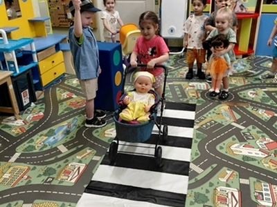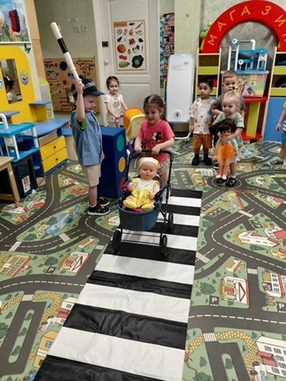 Сюжетно-ролевые игры «Пешеходный переход» и «Автобус»: Ребята примеряли на себя роли водителей, пешеходов и даже вежливых инспекторов, отрабатывая алгоритм правильного перехода дороги.